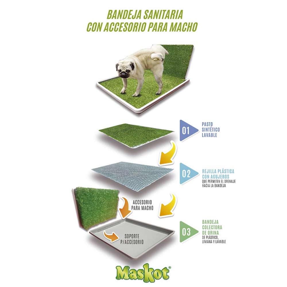 Bandeja Sanitaria Ecológica con rejilla y Accesorio para Perro Macho